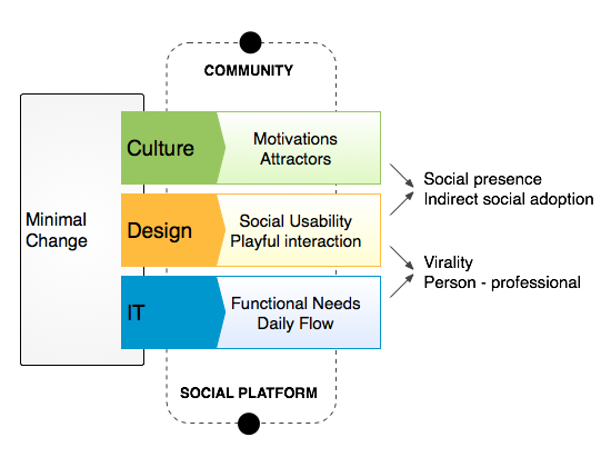 How put together social software, interaction design and change management without creating an overly consultancy and/or a simple sum of approaches?